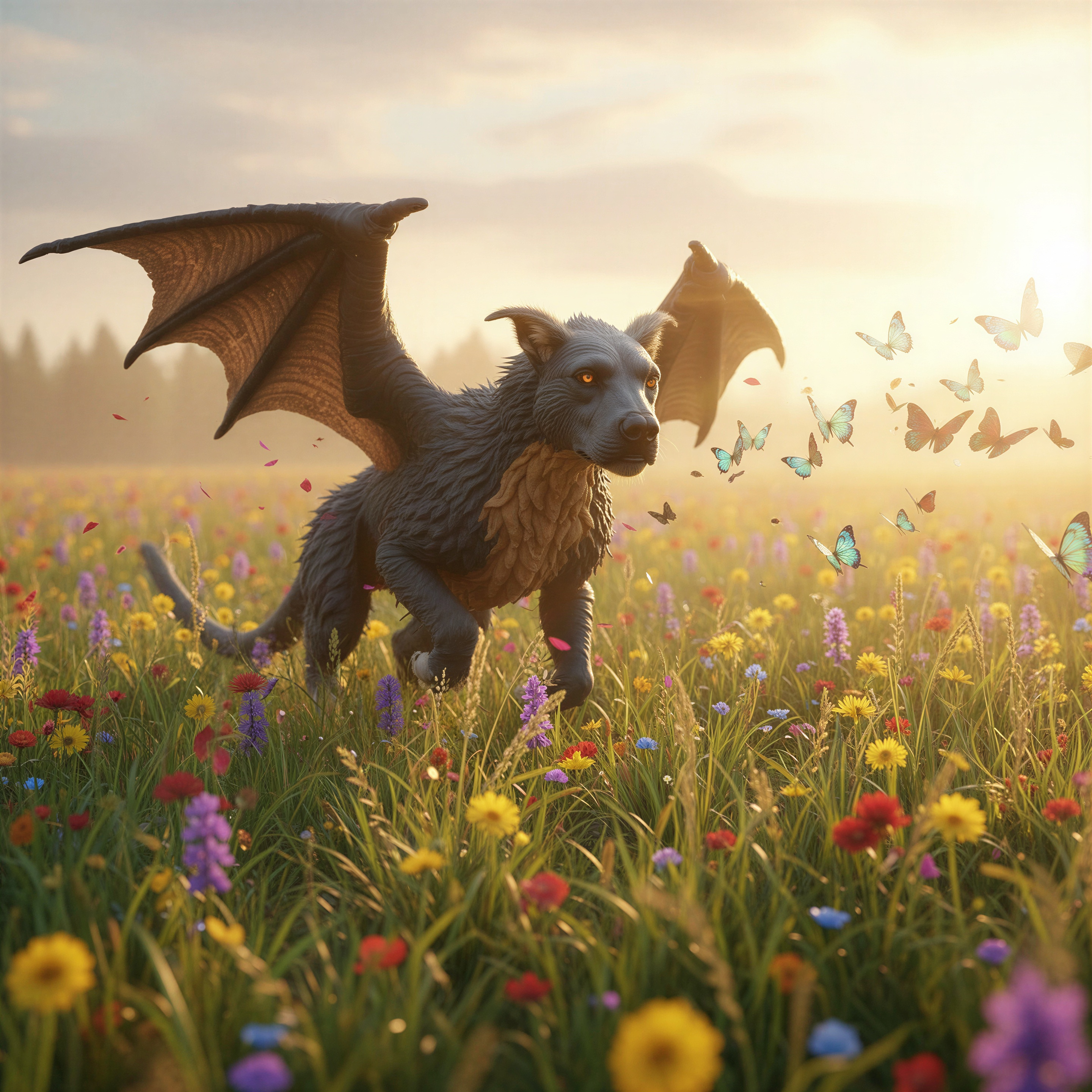 The image is alright, I guess. It’s certainly nothing to write home about, but definitely far better than the alien shots we started out with, in my opinion. I will say that the ai is doing a fantastic job of textures and realism, both in the scenery and also the dogs fur. But, unfortunately, I can’t really use the image because his wings are missing.