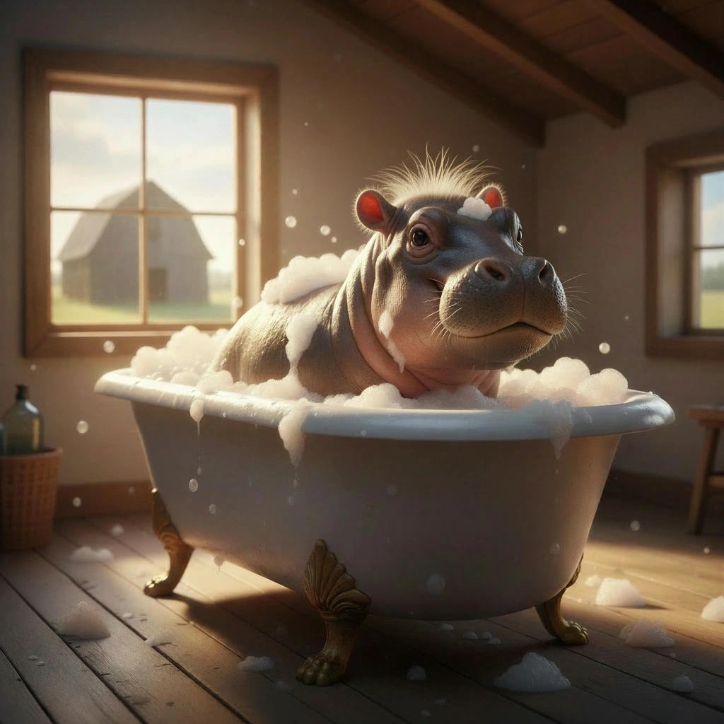 My first query was simply asking for a photorealistic image of an adorable baby hippo, but before finishing the prompt, I selected the auto enhance option for a more complete description. This was my first full query…