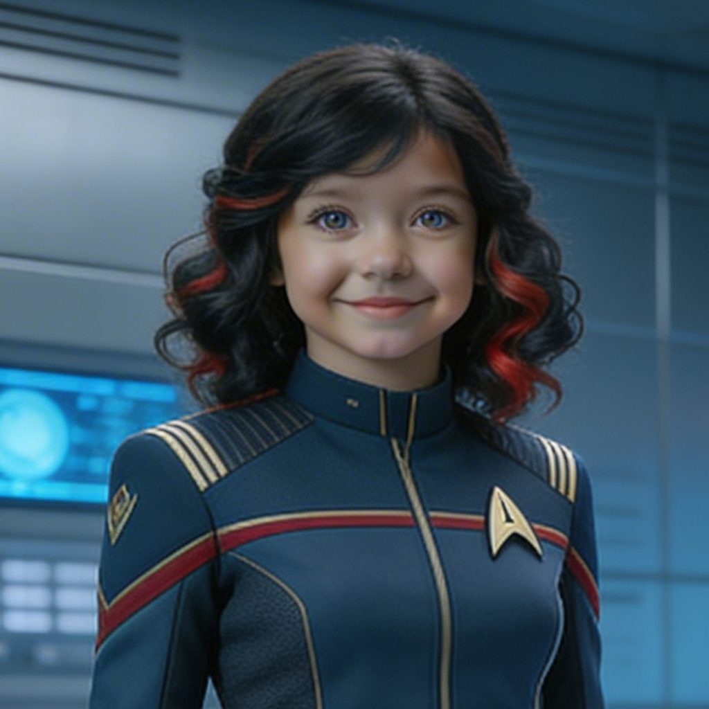 This image is of my daughter, but the two of them look alike, aside from their hair and eye color. Maisie has about three inches of hair going in every direction, and she has her daddy’s black brown eye color.