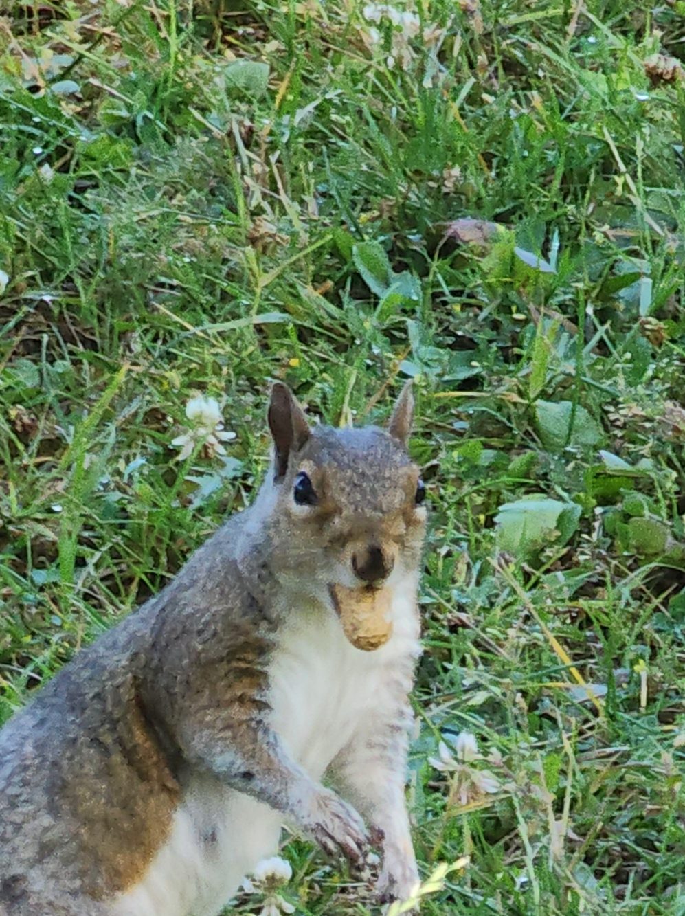 I stood there for a moment, sort of frozen, letting my brain fully register that the Lady was full on serious! She noticed my surprise and waited patiently for me to catch up. I realized that we were standing there awkwardly staring at each other, and immediately knelt down and handed her a peanut from my pocket.