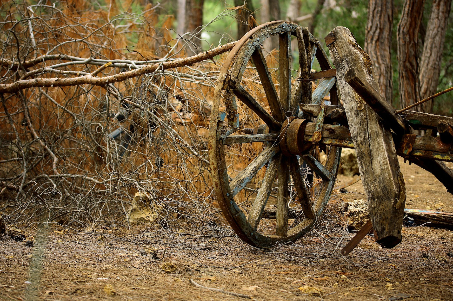 Oh dear… this is not at all what I had been expecting, if truth be told!  While I dreamt of the scene we would be encountering, I had not anticipated things to look so different, once we arrived.  This is an absolute mess!  The cart has been smashed, along with the crate that has been resting at the back.  Whatever was inside the crate has either been crushed or strewn about the area.  What a waste…