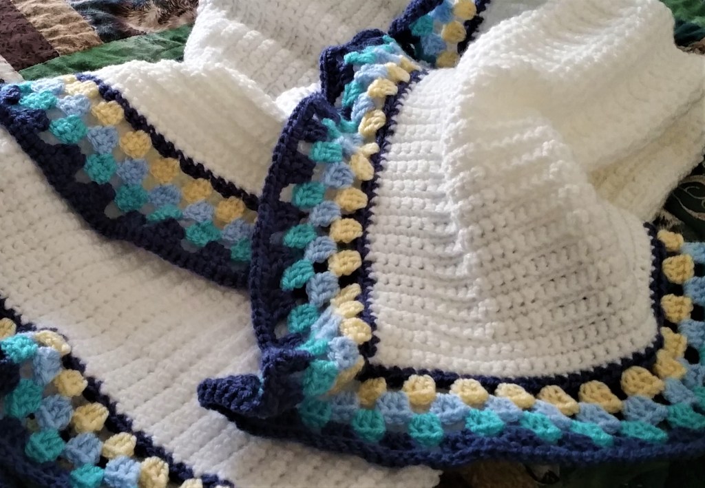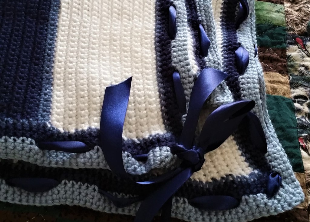 You do lovely work. You have a delicate hand with crochet, and I can see really good tension in your pieces. I am partial to the blue one with ribbon–but as I said 1,3,5. ❤