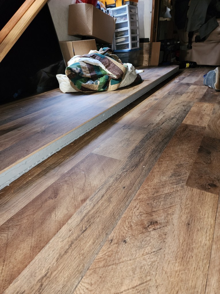 I know it may sound silly, but I am so excited that our floor is in, I don’t even care that there’s chaos reigning in every other corner of the RV… one thing at a time… baby steps!