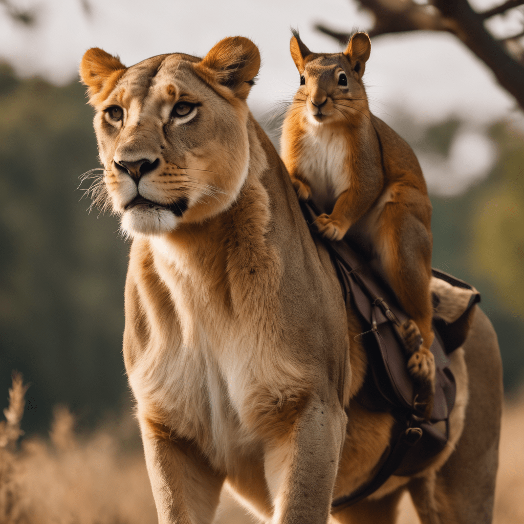 This is what I got when I asked my AI for a picture of a squirrel riding a lion… don’t blame me, it’s not my idea!
