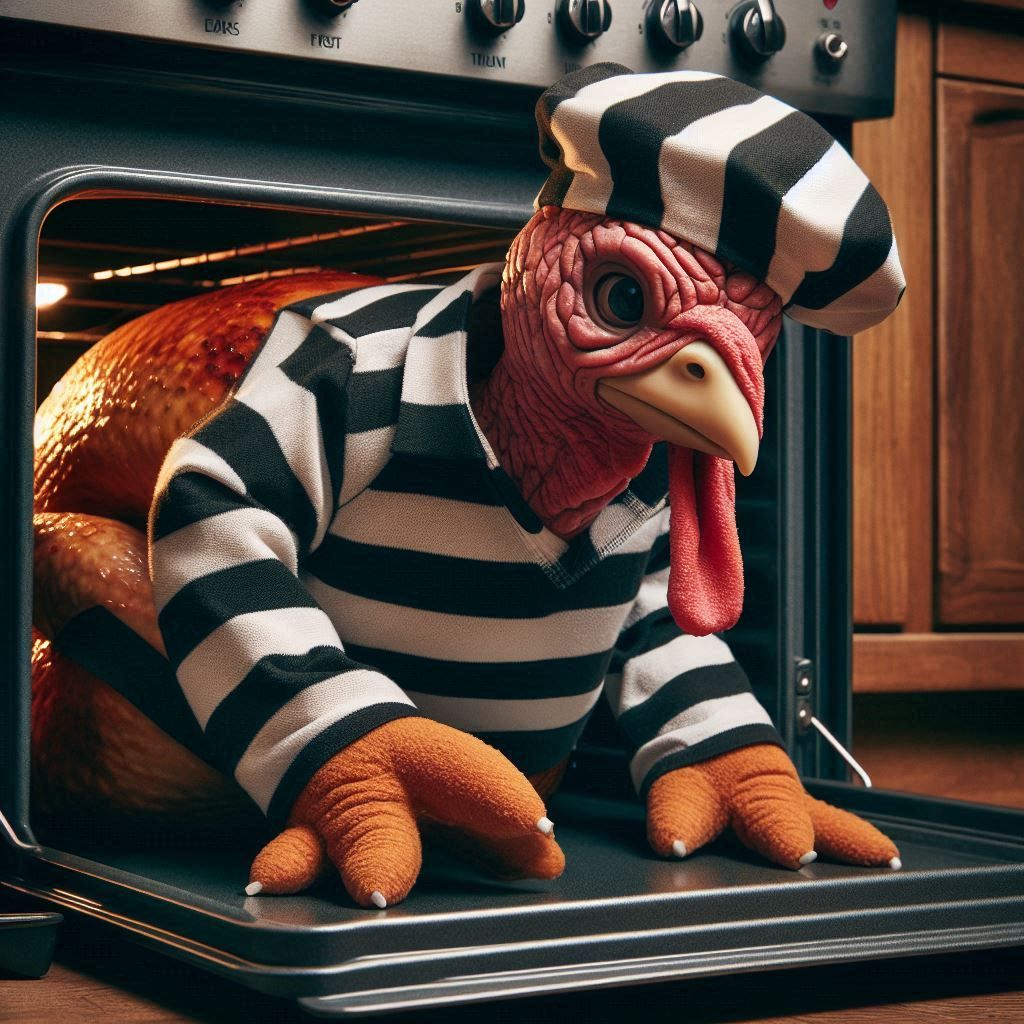 If anyone asks… you saw nothing here, and certainly not a turkey sneaking out the back door… got it?!