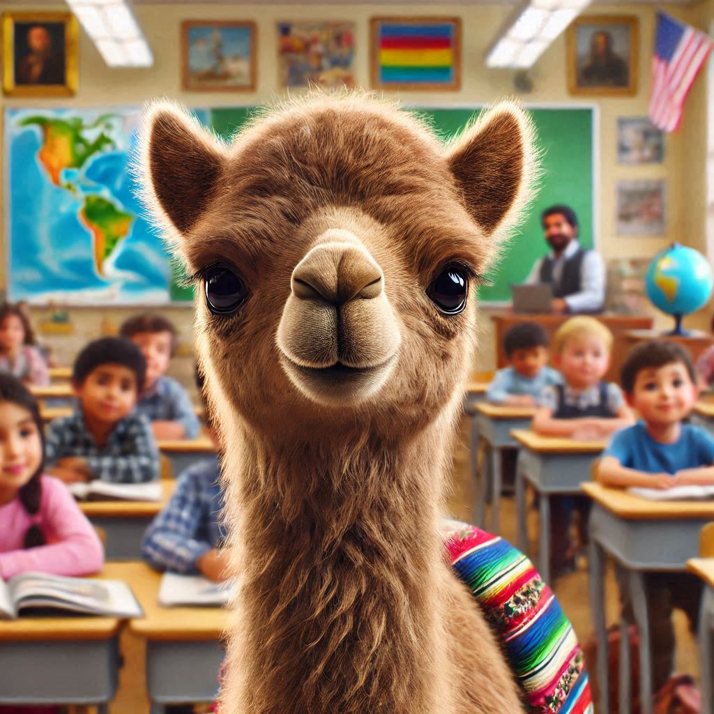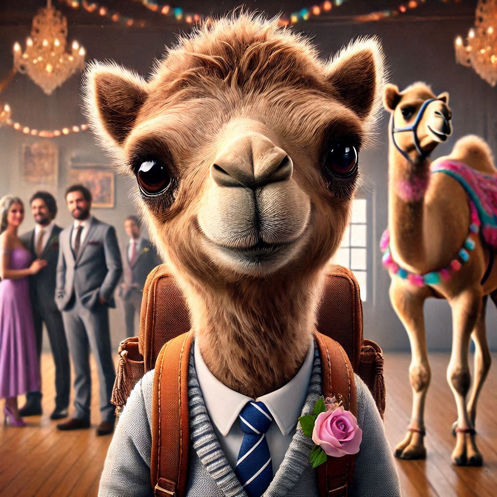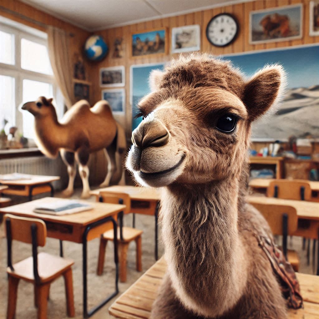 When I asked to put the camel up front, the teacher moved to the back and all the students are looking at the wall. Not only that, but the chalkboard is behind them… And why are half of the kids turned into cartoons?
