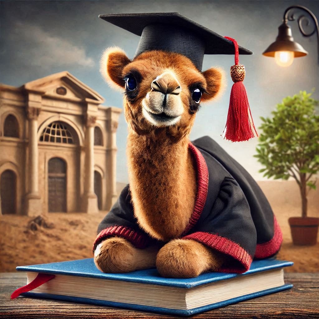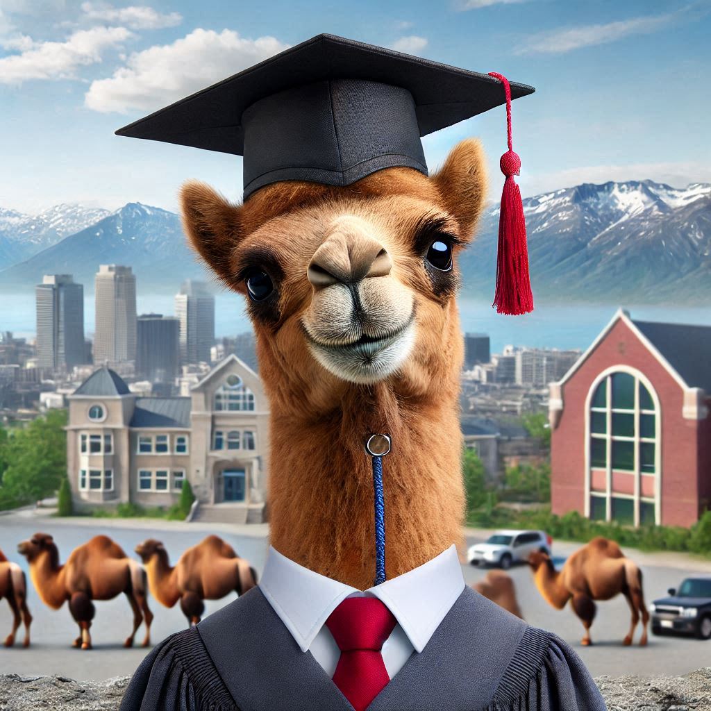 From birth, our favorite camel began learning things at an alarming rate, landing him in college at a very early age. First, there were advanced learning courses at the community college (just ignore the random light hanging from nowhere).