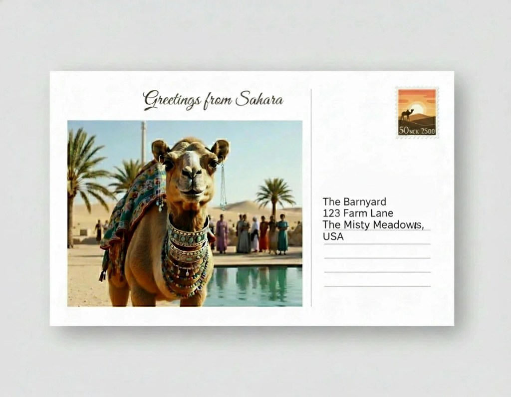 Eustace is still visiting his family, but wanted to send you his customary Wednesday greeting. He should be home by next week, I think. You know how camel’s can be when they’re with their caravan. I may even have to send Brutus off to collect our big guy, what with all those sparkly bangles he’s wearing… no way for him to sneak all that jewelry past airport security, without setting off all the alarms!