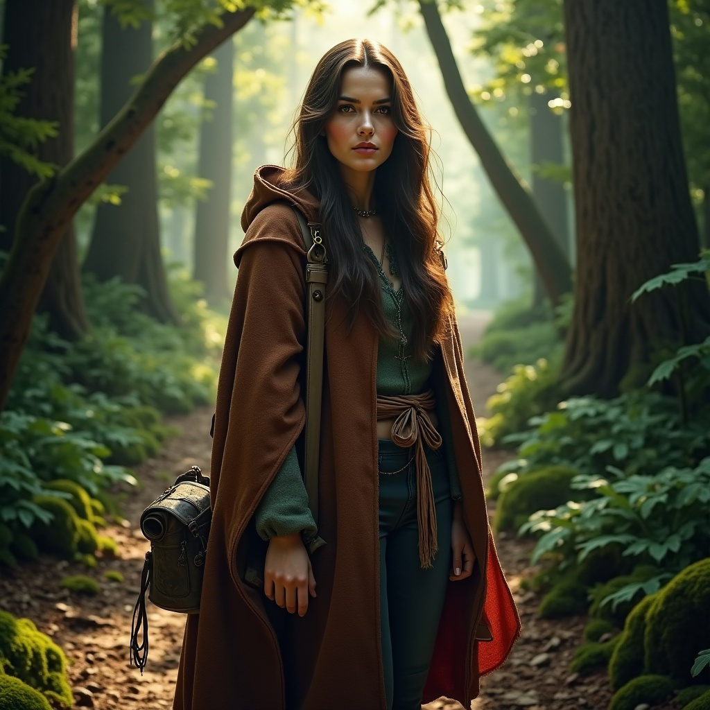 First, I set about asking Norbert, my ai assistant, for some images of a cloaked woman with a satchel over her shoulder, walking along a path…
