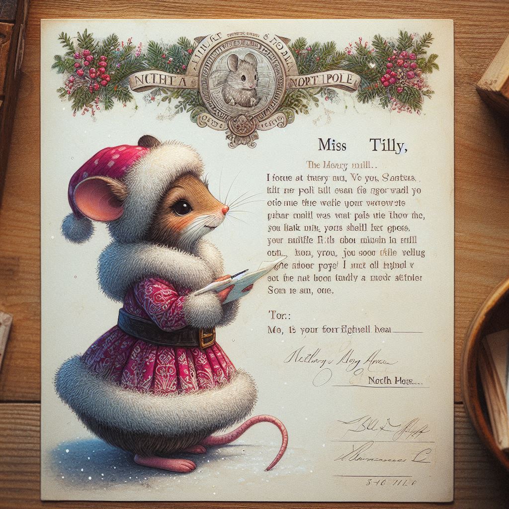 Anyway, after untangling Dinky from one of my legs and baby Maurgarite from the other, I made my way across the room to collect the letters that had caused all the morning’s excitement. Taking the messages from Brutus, I saw that the first had come from Pinion Valley, and the second was actually from the North Pole… No wonder the barn was up in arms!