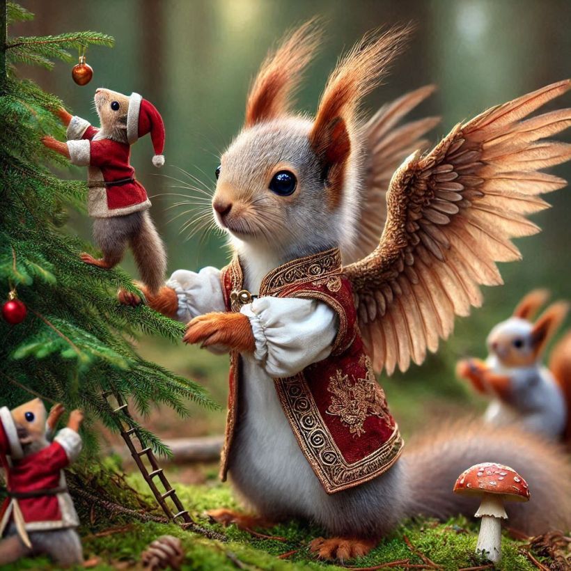 You may be wondering why on earth they want pine bows if we’ve already put our tree up inside the barn? Well, I must back things up a bit, to when Brutus and I flew to Pinion Valley several weeks ago, in order to visit with young Squagon.