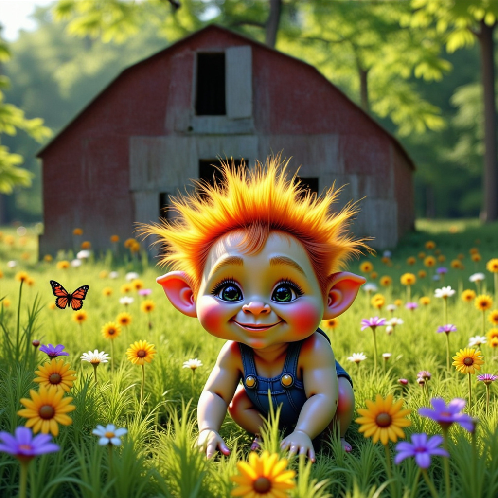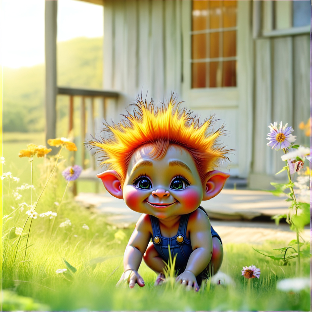 I had to cover the little guy up, just so that you can see the image. For whatever reason, Norbert (AI) thought taking the troll’s clothes off would make the background look more realistic. I don’t know, but I did nearly spill my tea in my lap when the image first appeared. Shocking, really! While a mother’s love finds nothing offensive about a chubby naked baby (we find it adorable, and so, so pinchable), but as for the rest of the public… butterflies it is!